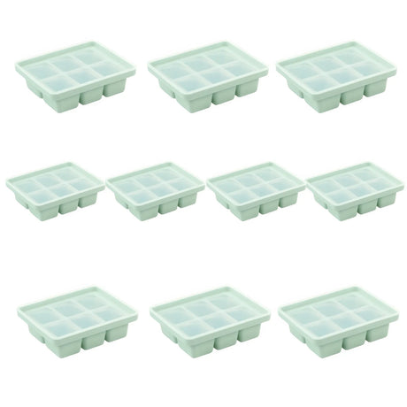 Baby Food-Prep & Serving Silicone Container Green - 6 Holes - 10 Pack Bundle