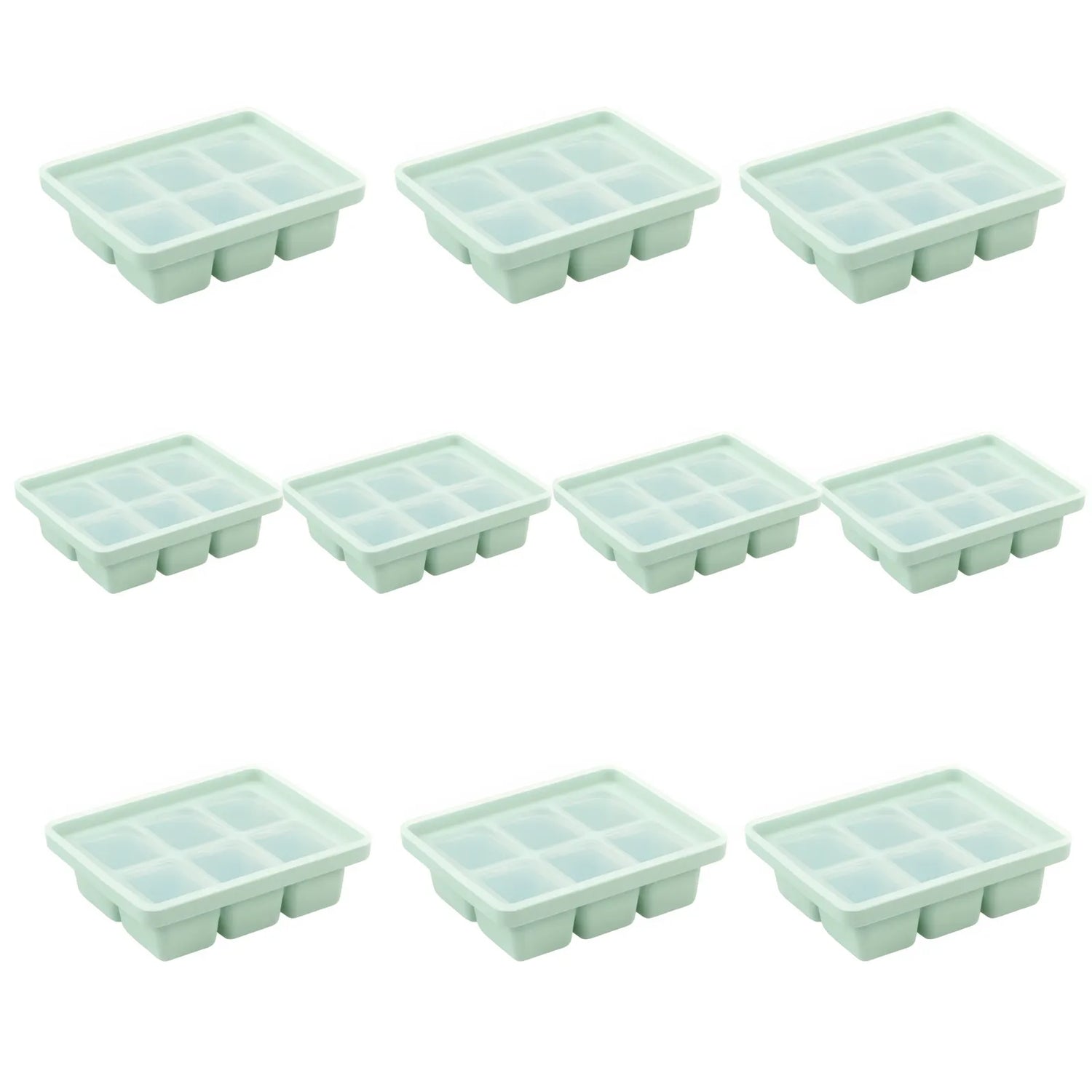 Baby Food-Prep & Serving Silicone Container Green - 6 Holes - 10 Pack Bundle