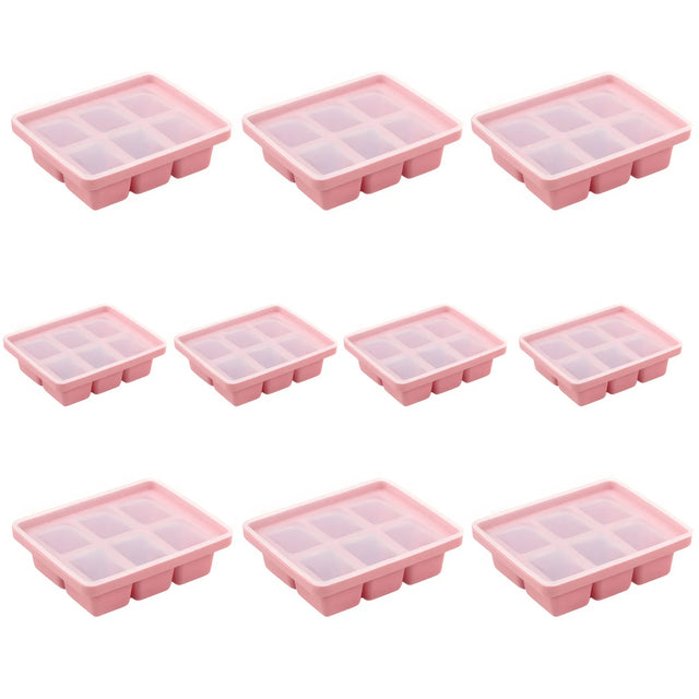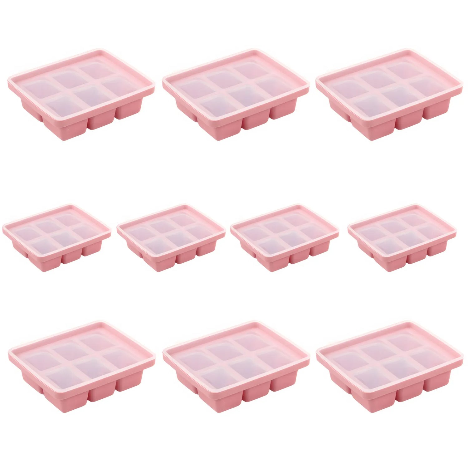 Baby Food-Prep & Serving Silicone Container Pink - 6 Holes - 10 Pack Bundle