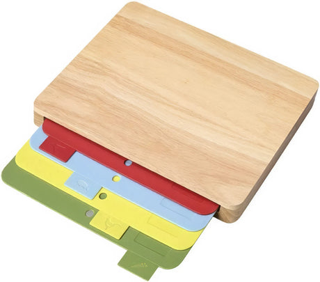 Bamboo Cutting & Storage Board with 4 Colour-Coded Chopping Mats