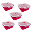 Silicone Square Foldable Lunch Box - Red - 5 Pack Bundle