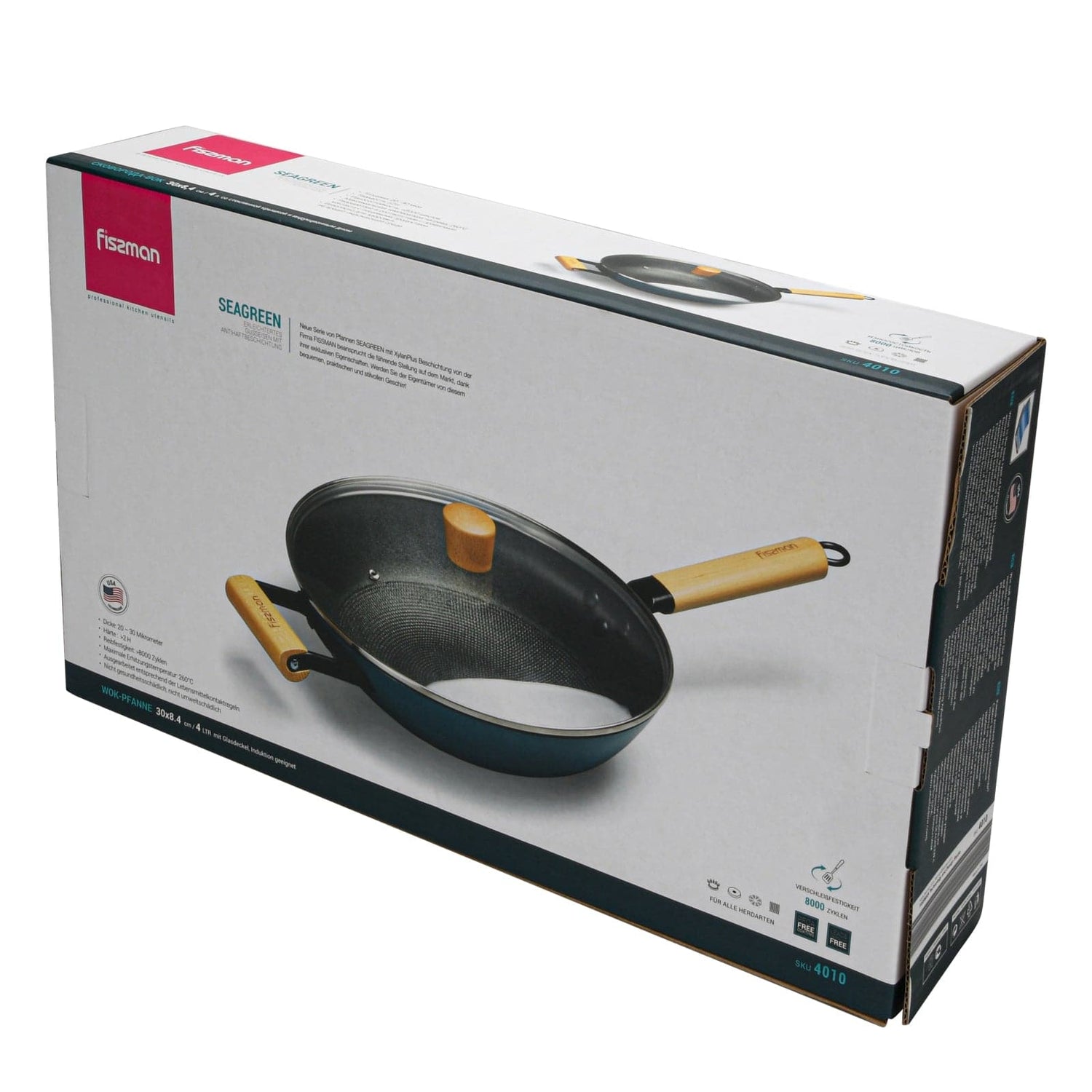 - 1 x Enameled lightweight cast iron with non-stick coating 30 cm x 8.4 cm Wok Style Fry Pan with glass lid