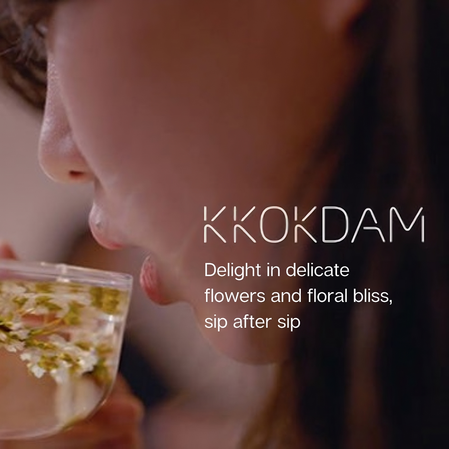 Cultivated over 120 hours through an exquisite process. The essence of meticulously crafted KKOKDAM floral tea, where time and nature intertwine harmoniously.