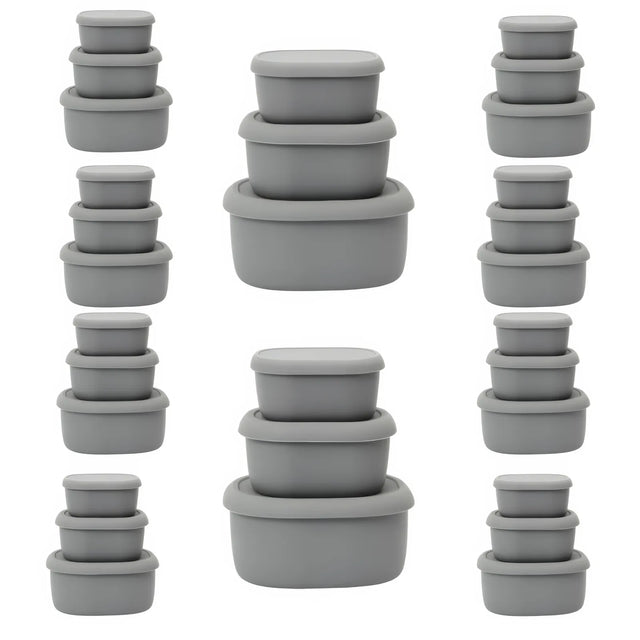 Grey 3-Piece Silicone Lunch Box Set - 10 Pack Bundle